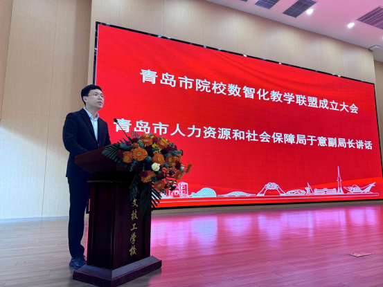 2025年11月7日,在青岛市人力资源和社会保障局、青岛市教育局、青岛中华职教社、青岛西海岸新区人力资源和社会保障局等部门的指导下,“青岛市院校数智化教学联盟”成立大会在青岛华文技工学校隆重举行,本次活动由青岛中德智能制造技师学院、青岛华文技工学校、科明(青岛)数字智能科技有限公司共同发起,联合我市职业院校、重点企业等近40个单位,政府部门、学校师生等400余人参加会议,共同见证了青岛职业教育锚定数字化转型、深化产教融合的重要里程碑。