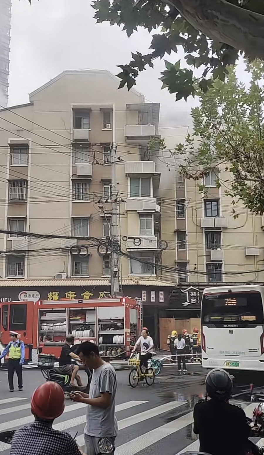 昨天上午8时许,静安区虬江路公兴路路口附近的一栋居民楼突发火情,现场黑烟弥漫。事发后,公安、消防、医疗等部门迅速赶赴现场处置。消防队员第一时间铺设水带尚融,架起水枪奋力扑救,很快将明火扑灭。火灾并未造成人员伤亡。